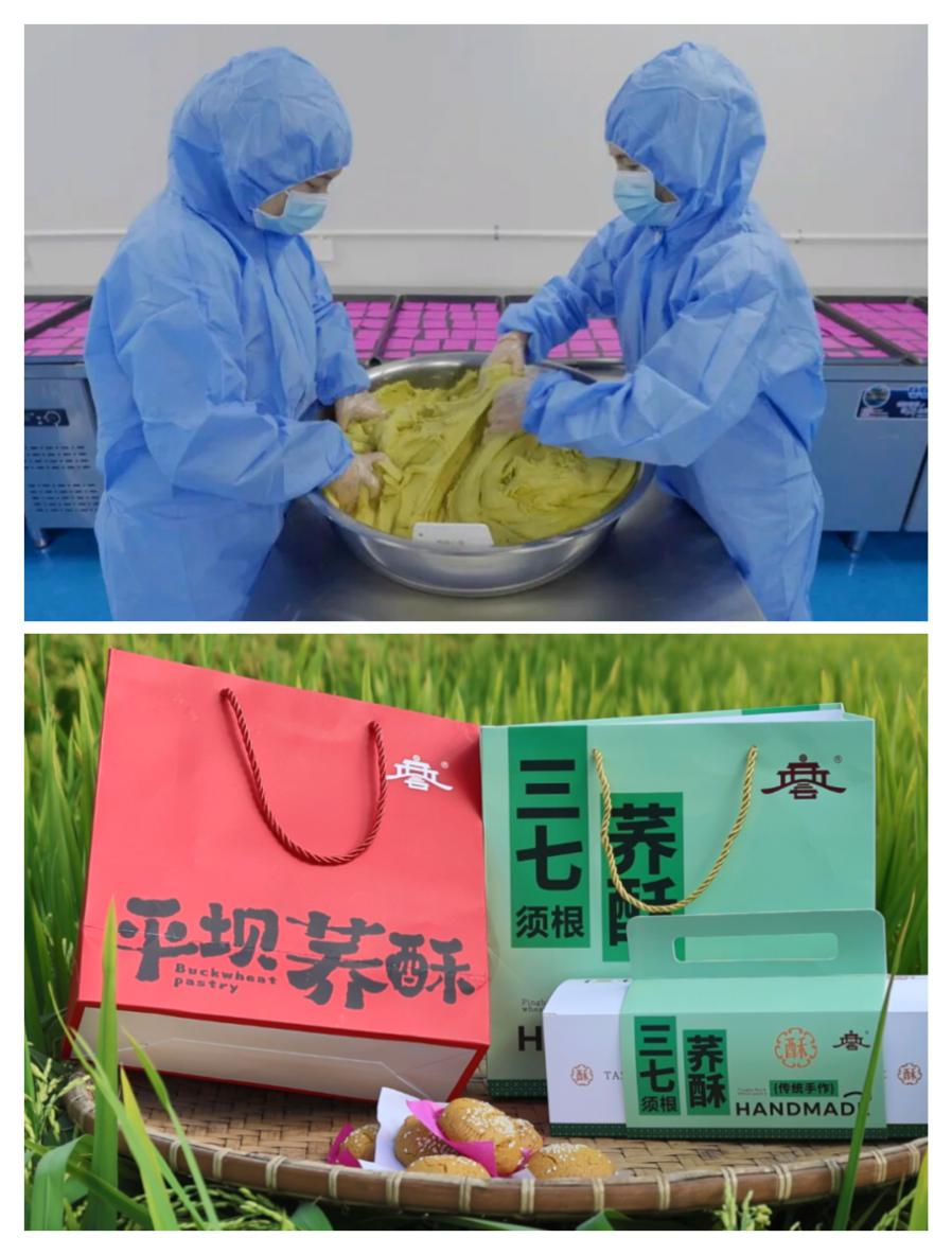 平坝荞酥于2016年被列入文山州非物质文化遗产。在过去,平坝荞酥虽然在文山州本地具有一定名气,但仍面临产品单一、产业链短、品牌意识弱等问题。为此,王艺霖代表从荞酥生产厂入手,坚持守正创新、品牌赋能、文化增值,将这个地地道道的农村“土特产”摇身一变成为抢手“香饽饽”。