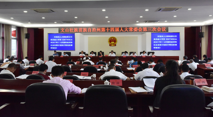 会议听取和审议州人民政府《关于文山州2017年1—6月国民经济和社会发展计划执行情况的报告》;听取和审议州人民政府《关于全州石漠化治理工作情况的报告》;审议州人大常委会调研组《关于百色—文山跨省经济合作园区建设情况的调研报告》;听取和审议州人大常委会执法检查组《关于检查〈中华人民共和国文物保护法〉实施情况的报告》;听取和审议州人民检察院《关于2014年以来侦查监督工作情况的报告》;听取和审议“一府两院”《关于向宪法宣誓工作情况的报告》;第一次审议《文山州人民代表大会及其常务委员会立法条例(草案)》;听取和审议《文山州人民政府关于2017年新增地方政府债券资金及债务限额分配的议案》;听取州十四届人大常委会代表资格审查委员会关于个别代表的代表资格审查报告;审议《文山州各级人大代表工作办法》;审议《文山州人大代表议案办理办法》;审议《文山州人大代表建议、批评和意见处理办法》;审议人事事项。会议表决通过了文山壮族苗族自治州人民代表大会常务委员会关于批准《文山州人民政府关于2017年新增地方政府债券资金及债务限额分配的议案》的决议、《文山州各级人大代表工作办法》、《文山州人大代表议案办理办法》、《文山州人大代表建议、批评和意见处理办法》;表决了有关人事事项。同时,总结了州人大常委会今年上半年的工作,并对下步工作作安排部署。