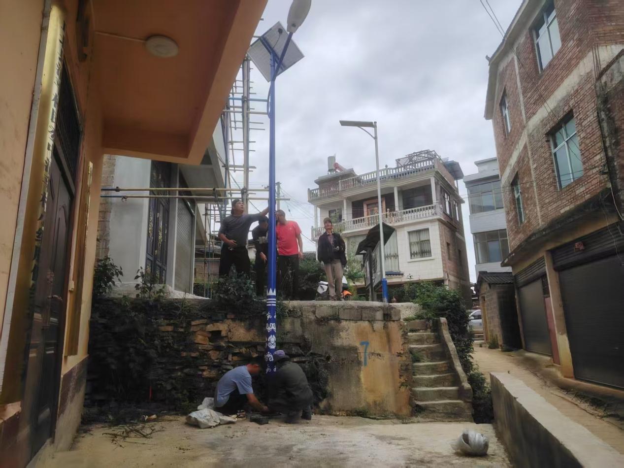 经过前期充分筹备,施工队伍于2025年6月21日正式进场,推进材料运输、障碍清整与灯杆组装等工序。历时十天紧张施工,五十盏崭新的太阳能路灯整齐矗立在村道两侧。每当夜幕降临,明亮的灯光沿着道路次第绽放,不仅彻底告别了村民“摸黑出行”的历史,更让每一位晚归的村民体会到政策为民的暖心守护。“太好了!安装了路灯,晚上出门散步、跳广场舞再也不用担心看不清路了!”清平村村民李大妈望着刚装好的太阳能路灯,笑得合不拢嘴。