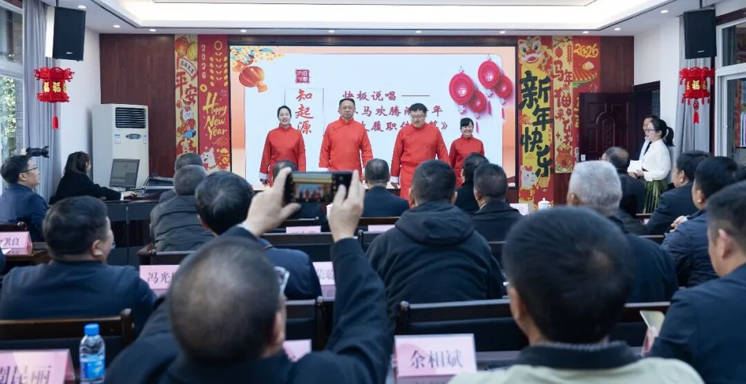 本次活动共有知起源、忆家乡、展风采、玩游戏、谈感悟、送吉祥六大环节。在欢快激昂的《快板说唱——小马欢腾闹新年 人大履职传美德》中,活动正式拉开帷幕。以传统曲艺形式,巧妙地将新年喜庆、美德传承与人大履职担当相结合,节奏明快、内容生动,瞬间点燃了现场气氛。随后的《古村落腊科的辽阔与欢欣》朗诵带领大家神游远方,感受古村落的深厚底蕴与质朴情怀。乐器合奏《云宫迅音》中,悠扬的旋律穿越时空,展现了机关干部职工多才多艺、昂扬向上的精神风貌,赢得了阵阵掌声。