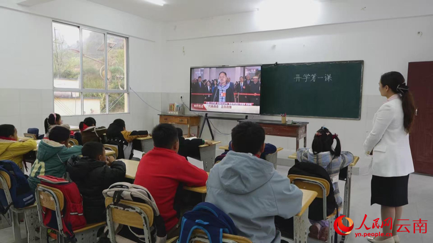 3月5日,十四届全国人大四次会议首场“代表通道”开启,全国人大代表、云南省文山壮族苗族自治州广南县落松地小学教师农加贵回答了记者提问。当天恰逢春季新学期开学,在千里之外的落松地小学,师生们集中收看农老师的发言。这场生动而有力量的开学第一课,让两会的春风从人民大会堂吹进了边疆的课堂,也让榜样之光照亮山区少年的逐梦之路。