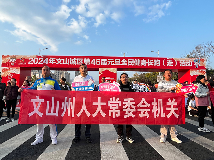 29日,2024年文山城区第46届元旦健身长跑(走)鸣枪起跑,州人大常委会机关9人参与长跑活动。